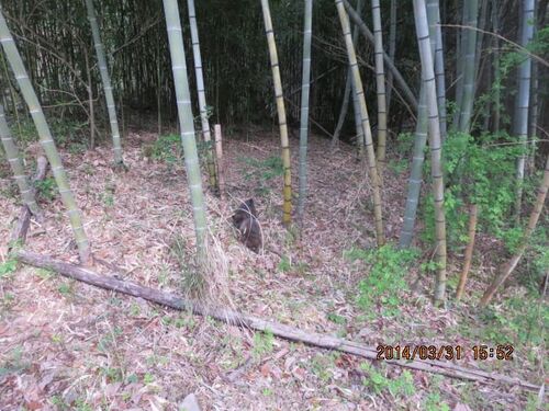 (親について竹やぶへ) 夕方になる前に姫が珍しく山へ行こうと最速の甘え声を出して部屋を見つめている。 時間的に早いと思ったが誘いの誘惑に負けて西の山へ行く。 今日も花子の気配なし。 子犬たちも農道を歩いて付いてくるが道草が多い。 姫がウサギを追…
