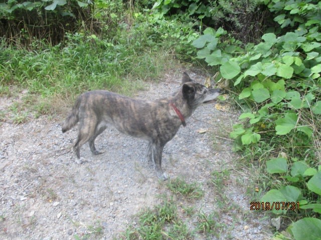 2019-07-31 部屋の中で熱中症。 Weblog これからまだ1カ月余り暑さが続きます。 今年は梅雨の前に暑い時期が有ったので2回も有ることに成る。 昨夜も部屋の中に居ても暑くて日付けが替わるまで眠られず、熱中症になりそう?。 朝、ゆっくり起きて燃えないゴミを出してから山へ散歩に行く。 姫とトラ子が30分ぐらい山で遊んで戻る、クマ子は早く帰り横で寝そべっていた。 帰った姫たちに水を飲ませて帰宅。 ((まだ本調子でない姫、尾が下がっています)